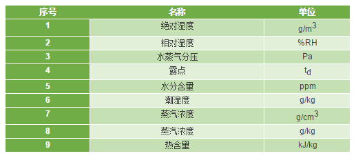 AH:*湿度(Absolute Humidity), 单位质量或体积空气中所含湿气的多少,单位g/kg或g/m3;
